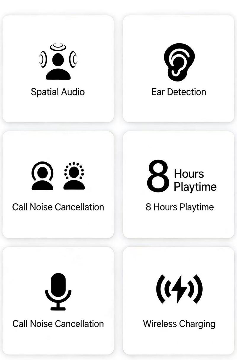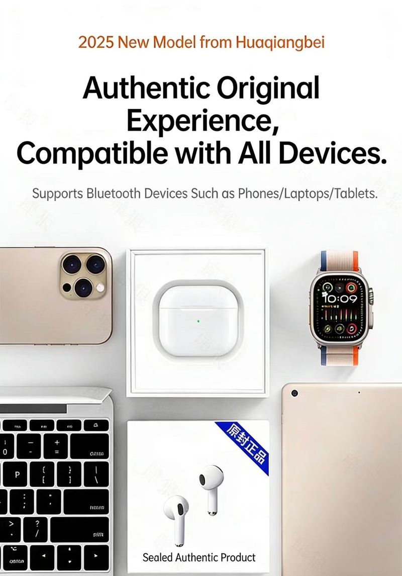 New 2025 model of Huaqiangbei Bluetooth earphones, 7th generation wireless sports earphones with noise cancellation and high sound quality. 1:1 original reproduction, slide volume adjustment, automatic ambient noise cancellation, personalized spatial audio, comfortable wear in all scenarios, 8 hours of battery life, wireless charging, call noise cancellation, in-ear detection, and up to 40 hours of battery life.